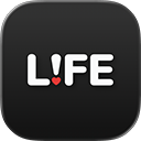 App icon with the word 'LIFE' in white capital letters and a red heart replacing the dot in the letter 'I' on a black background.